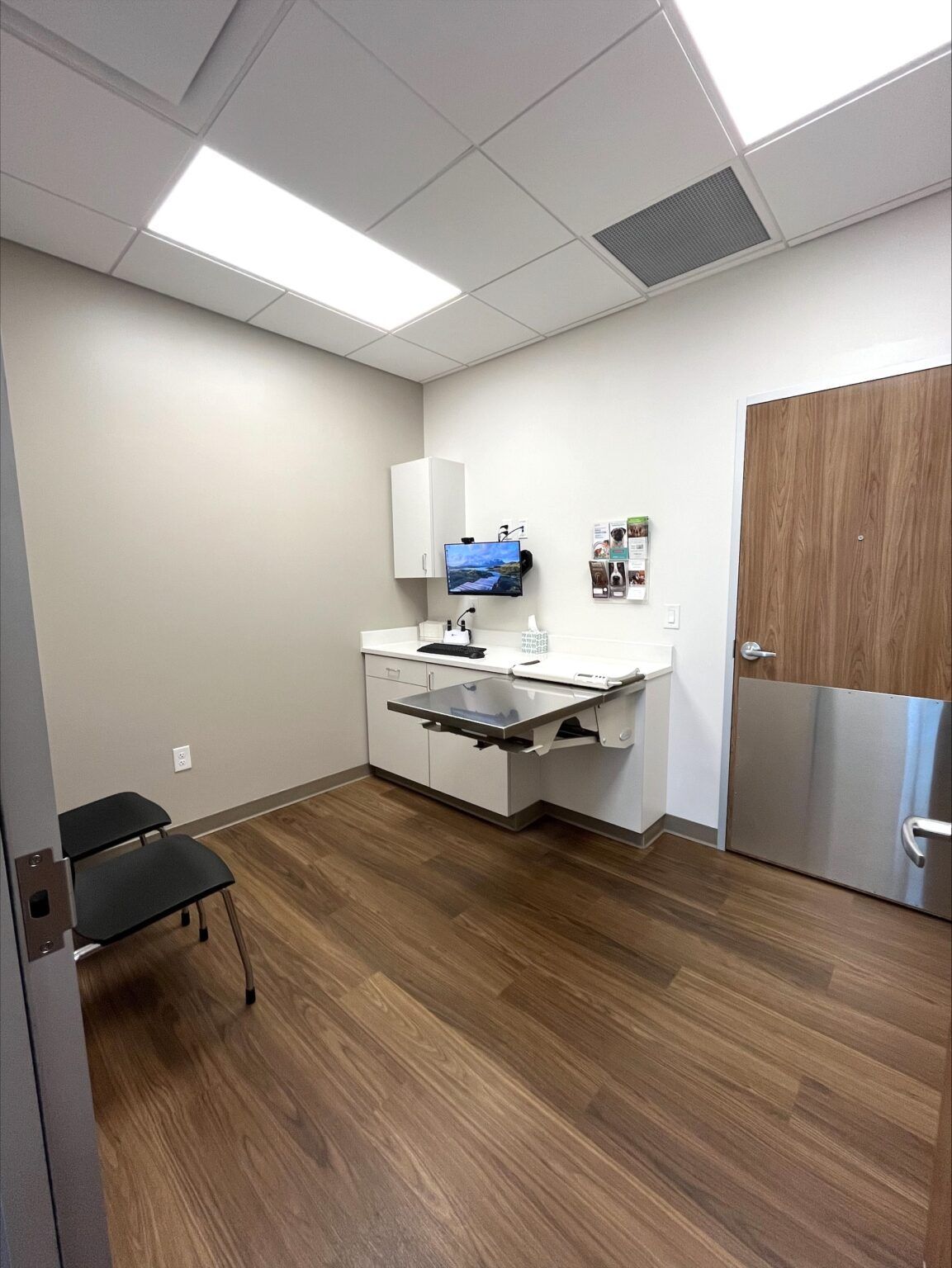The veterinary clinic expansion and build-out project transformed the facility into a modern, efficient space designed to enhance client and patient care. The clinic now features a clean, sophisticated design and has expanded from three to seven exam rooms, allowing for shorter wait times and greater appointment availability.