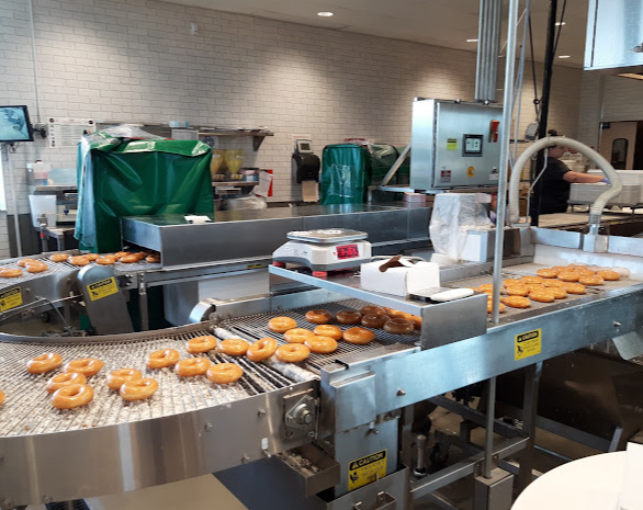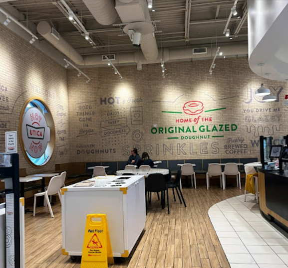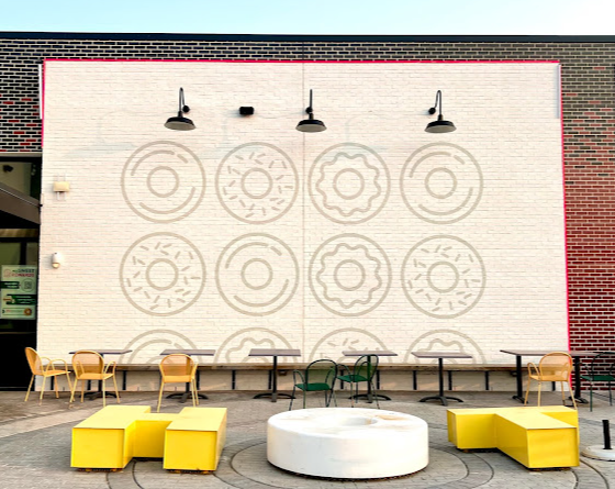 This project included new construction and renovation work for a Krispy Kreme location. The structure features reinforced masonry walls with brick and stucco finishes for durability. Steel framing supports the curved façade and large storefront glass installations.
