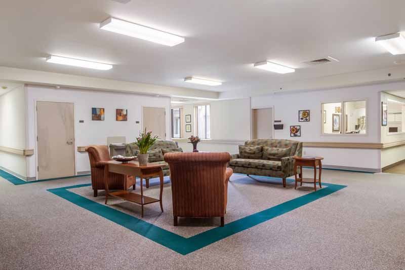 The project consists of renovations to the entire facility including entry, lobby, offices, corridors, nurse stations, resident rooms, beauty salon, therapy area, dining room, lounges, and activity rooms.